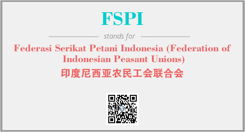 上述内容是“Federasi Serikat Petani Indonesia (Federation of Indonesian Peasant Unions)”作为“FSPI”的缩写,解释为“印度尼西亚农民工会联合会”时的信息,以及英文缩略词FSPI所代表的英文单词,其对应的中文拼音、详细解释以及在英文中的流行度和相关分类、应用领域及应用示例等。