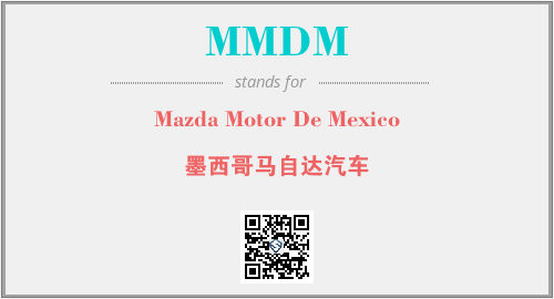 英文缩略词“MMDM”经常作为“Mazda Motor De Mexico”的英文缩写来使用,中文表示:“墨西哥马自达汽车”。本文将详细介绍英文缩写词MMDM所代表英文单词,其对应的中文拼音、详细解释以及在英语中的流行度。此外,还有关于缩略词MMDM的分类、应用领域及相关应用示例等。