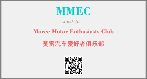 上述内容是“Moree Motor Enthusiasts Club”作为“MMEC”的缩写,解释为“莫雷汽车爱好者俱乐部”时的信息,以及英文缩略词MMEC所代表的英文单词,其对应的中文拼音、详细解释以及在英文中的流行度和相关分类、应用领域及应用示例等。