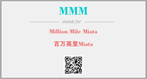 英文缩略词“MMM”经常作为“Million Mile Miata”的英文缩写来使用,中文表示:“百万英里Miata”。本文将详细介绍英文缩写词MMM所代表英文单词,其对应的中文拼音、详细解释以及在英语中的流行度。此外,还有关于缩略词MMM的分类、应用领域及相关应用示例等。
