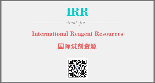 上述内容是“International Reagent Resources”作为“IRR”的缩写,解释为“国际试剂资源”时的信息,以及英文缩略词IRR所代表的英文单词,其对应的中文拼音、详细解释以及在英文中的流行度和相关分类、应用领域及应用示例等。