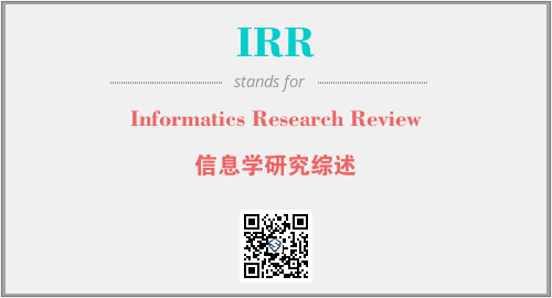 上述内容是“Informatics Research Review”作为“IRR”的缩写,解释为“信息学研究综述”时的信息,以及英文缩略词IRR所代表的英文单词,其对应的中文拼音、详细解释以及在英文中的流行度和相关分类、应用领域及应用示例等。