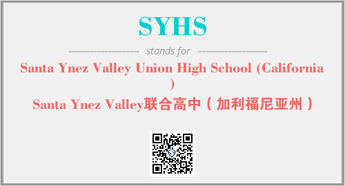 以上为Santa Ynez Valley Union High School (California)英文缩略词SYHS的中文解释,以及该英文缩写在英语的流行度、分类和应用领域方面的信息。