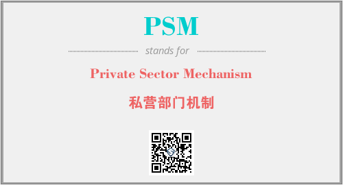 以上为Private Sector Mechanism英文缩略词PSM的中文解释,以及该英文缩写在英语的流行度、分类和应用领域方面的信息。