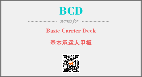 英文缩略词“BCD”经常作为“Basic Carrier Deck”的英文缩写来使用,中文表示:“基本承运人甲板”。本文将详细介绍英文缩写词BCD所代表英文单词,其对应的中文拼音、详细解释以及在英语中的流行度。此外,还有关于缩略词BCD的分类、应用领域及相关应用示例等。