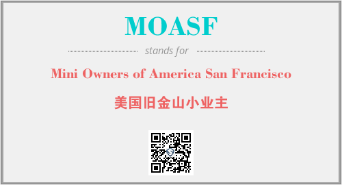上述内容是“Mini Owners of America San Francisco”作为“MOASF”的缩写,解释为“美国旧金山小业主”时的信息,以及英文缩略词MOASF所代表的英文单词,其对应的中文拼音、详细解释以及在英文中的流行度和相关分类、应用领域及应用示例等。