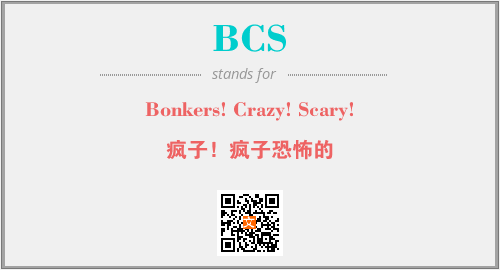 以上为Bonkers! Crazy! Scary!英文缩略词BCS的中文解释,以及该英文缩写在英语的流行度、分类和应用领域方面的信息。