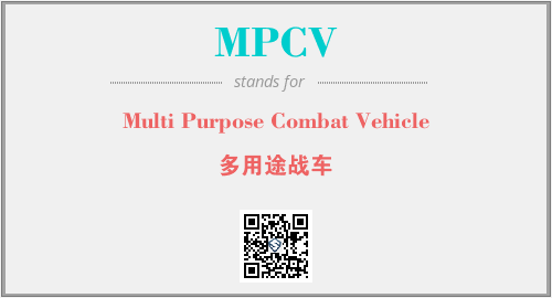 英文缩略词“MPCV”经常作为“Multi Purpose Combat Vehicle”的英文缩写来使用,中文表示:“多用途战车”。本文将详细介绍英文缩写词MPCV所代表英文单词,其对应的中文拼音、详细解释以及在英语中的流行度。此外,还有关于缩略词MPCV的分类、应用领域及相关应用示例等。