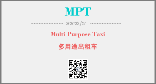 英文缩略词“MPT”经常作为“Multi Purpose Taxi”的英文缩写来使用,中文表示:“多用途出租车”。本文将详细介绍英文缩写词MPT所代表英文单词,其对应的中文拼音、详细解释以及在英语中的流行度。此外,还有关于缩略词MPT的分类、应用领域及相关应用示例等。