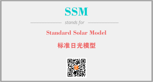 英文缩略词“SSM”经常作为“Standard Solar Model”的英文缩写来使用,中文表示:“标准日光模型”。本文将详细介绍英文缩写词SSM所代表英文单词,其对应的中文拼音、详细解释以及在英语中的流行度。此外,还有关于缩略词SSM的分类、应用领域及相关应用示例等。