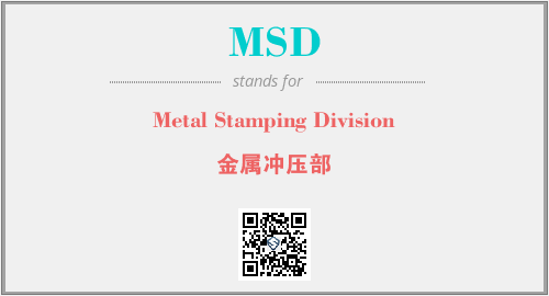 上述内容是“Metal Stamping Division”作为“MSD”的缩写,解释为“金属冲压部”时的信息,以及英文缩略词MSD所代表的英文单词,其对应的中文拼音、详细解释以及在英文中的流行度和相关分类、应用领域及应用示例等。