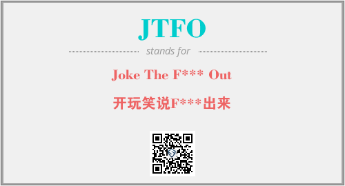 以上为Joke The F*** Out英文缩略词JTFO的中文解释,以及该英文缩写在英语的流行度、分类和应用领域方面的信息。
