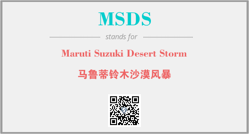 上述内容是“Maruti Suzuki Desert Storm”作为“MSDS”的缩写,解释为“马鲁蒂铃木沙漠风暴”时的信息,以及英文缩略词MSDS所代表的英文单词,其对应的中文拼音、详细解释以及在英文中的流行度和相关分类、应用领域及应用示例等。
