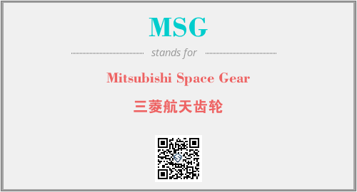 上述内容是“Mitsubishi Space Gear”作为“MSG”的缩写,解释为“三菱航天齿轮”时的信息,以及英文缩略词MSG所代表的英文单词,其对应的中文拼音、详细解释以及在英文中的流行度和相关分类、应用领域及应用示例等。