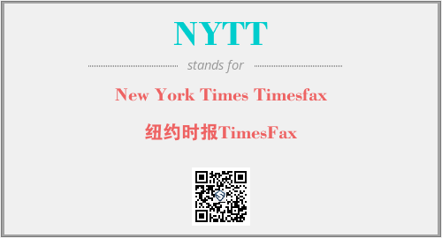 上述内容是“New York Times Timesfax”作为“NYTT”的缩写,解释为“纽约时报TimesFax”时的信息,以及英文缩略词NYTT所代表的英文单词,其对应的中文拼音、详细解释以及在英文中的流行度和相关分类、应用领域及应用示例等。