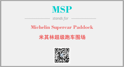 上述内容是“Michelin Supercar Paddock”作为“MSP”的缩写,解释为“米其林超级跑车围场”时的信息,以及英文缩略词MSP所代表的英文单词,其对应的中文拼音、详细解释以及在英文中的流行度和相关分类、应用领域及应用示例等。