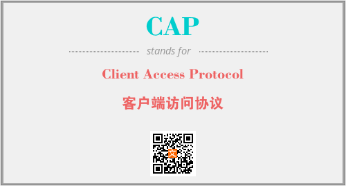 上述内容是“Client Access Protocol”作为“CAP”的缩写,解释为“客户端访问协议”时的信息,以及英文缩略词CAP所代表的英文单词,其对应的中文拼音、详细解释以及在英文中的流行度和相关分类、应用领域及应用示例等。