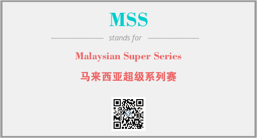 英文缩略词“MSS”经常作为“Malaysian Super Series”的英文缩写来使用,中文表示:“马来西亚超级系列赛”。本文将详细介绍英文缩写词MSS所代表英文单词,其对应的中文拼音、详细解释以及在英语中的流行度。此外,还有关于缩略词MSS的分类、应用领域及相关应用示例等。