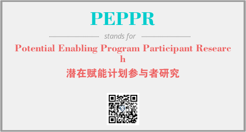 以上为Potential Enabling Program Participant Research英文缩略词PEPPR的中文解释,以及该英文缩写在英语的流行度、分类和应用领域方面的信息。