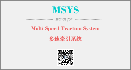 上述内容是“Multi Speed Traction System”作为“MSYS”的缩写,解释为“多速牵引系统”时的信息,以及英文缩略词MSYS所代表的英文单词,其对应的中文拼音、详细解释以及在英文中的流行度和相关分类、应用领域及应用示例等。
