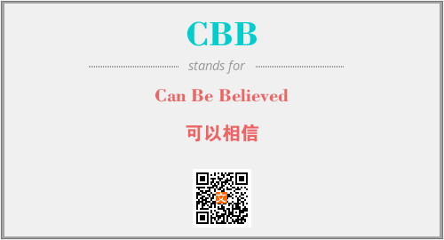 英文缩略词“CBB”经常作为“Can Be Believed”的英文缩写来使用,中文表示:“可以相信”。本文将详细介绍英文缩写词CBB所代表英文单词,其对应的中文拼音、详细解释以及在英语中的流行度。此外,还有关于缩略词CBB的分类、应用领域及相关应用示例等。