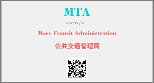 英文缩略词“MTA”经常作为“Mass Transit Administration”的英文缩写来使用,中文表示:“公共交通管理局”。本文将详细介绍英文缩写词MTA所代表英文单词,其对应的中文拼音、详细解释以及在英语中的流行度。此外,还有关于缩略词MTA的分类、应用领域及相关应用示例等。