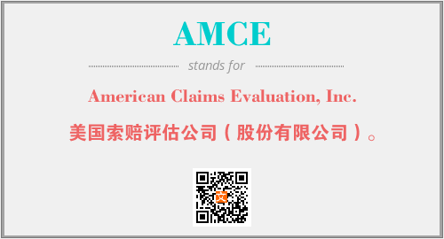 上述内容是“American Claims Evaluation, Inc.”作为“AMCE”的缩写,解释为“美国索赔评估公司(股份有限公司)。”时的信息,以及英文缩略词AMCE所代表的英文单词,其对应的中文拼音、详细解释以及在英文中的流行度和相关分类、应用领域及应用示例等。