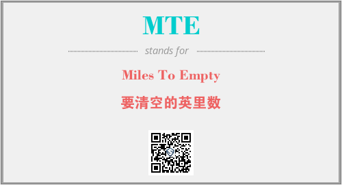 上述内容是“Miles To Empty”作为“MTE”的缩写,解释为“要清空的英里数”时的信息,以及英文缩略词MTE所代表的英文单词,其对应的中文拼音、详细解释以及在英文中的流行度和相关分类、应用领域及应用示例等。