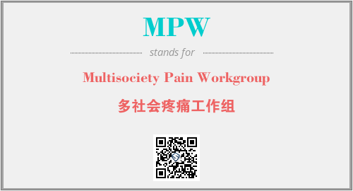 英文缩略词“MPW”经常作为“Multisociety Pain Workgroup”的英文缩写来使用,中文表示:“多社会疼痛工作组”。本文将详细介绍英文缩写词MPW所代表英文单词,其对应的中文拼音、详细解释以及在英语中的流行度。此外,还有关于缩略词MPW的分类、应用领域及相关应用示例等。