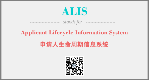 上述内容是“Applicant Lifecycle Information System”作为“ALIS”的缩写,解释为“申请人生命周期信息系统”时的信息,以及英文缩略词ALIS所代表的英文单词,其对应的中文拼音、详细解释以及在英文中的流行度和相关分类、应用领域及应用示例等。