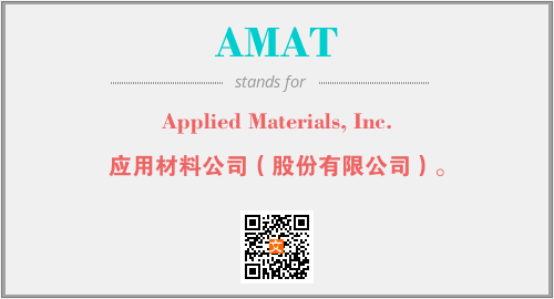 上述内容是“Applied Materials, Inc.”作为“AMAT”的缩写,解释为“应用材料公司(股份有限公司)。”时的信息,以及英文缩略词AMAT所代表的英文单词,其对应的中文拼音、详细解释以及在英文中的流行度和相关分类、应用领域及应用示例等。