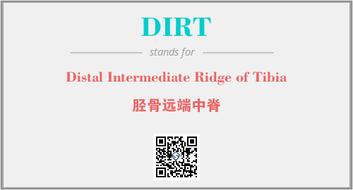 英文缩略词“DIRT”经常作为“Distal Intermediate Ridge of Tibia”的英文缩写来使用,中文表示:“胫骨远端中脊”。本文将详细介绍英文缩写词DIRT所代表英文单词,其对应的中文拼音、详细解释以及在英语中的流行度。此外,还有关于缩略词DIRT的分类、应用领域及相关应用示例等。