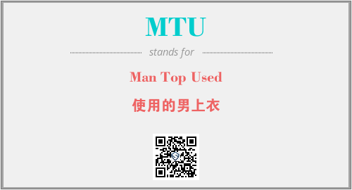 英文缩略词“MTU”经常作为“Man Top Used”的英文缩写来使用,中文表示:“使用的男上衣”。本文将详细介绍英文缩写词MTU所代表英文单词,其对应的中文拼音、详细解释以及在英语中的流行度。此外,还有关于缩略词MTU的分类、应用领域及相关应用示例等。