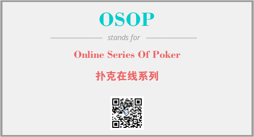 上述内容是“Online Series Of Poker”作为“OSOP”的缩写,解释为“扑克在线系列”时的信息,以及英文缩略词OSOP所代表的英文单词,其对应的中文拼音、详细解释以及在英文中的流行度和相关分类、应用领域及应用示例等。