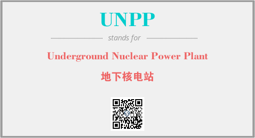 英文缩略词“UNPP”经常作为“Underground Nuclear Power Plant”的英文缩写来使用,中文表示:“地下核电站”。本文将详细介绍英文缩写词UNPP所代表英文单词,其对应的中文拼音、详细解释以及在英语中的流行度。此外,还有关于缩略词UNPP的分类、应用领域及相关应用示例等。