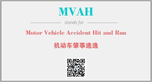 上述内容是“Motor Vehicle Accident Hit and Run”作为“MVAH”的缩写,解释为“机动车肇事逃逸”时的信息,以及英文缩略词MVAH所代表的英文单词,其对应的中文拼音、详细解释以及在英文中的流行度和相关分类、应用领域及应用示例等。