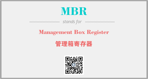 英文缩略词“MBR”经常作为“Management Box Register”的英文缩写来使用,中文表示:“管理箱寄存器”。本文将详细介绍英文缩写词MBR所代表英文单词,其对应的中文拼音、详细解释以及在英语中的流行度。此外,还有关于缩略词MBR的分类、应用领域及相关应用示例等。