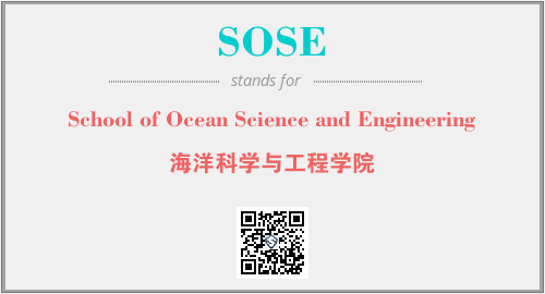 英文缩略词“SOSE”经常作为“School of Ocean Science and Engineering”的英文缩写来使用,中文表示:“海洋科学与工程学院”。本文将详细介绍英文缩写词SOSE所代表英文单词,其对应的中文拼音、详细解释以及在英语中的流行度。此外,还有关于缩略词SOSE的分类、应用领域及相关应用示例等。