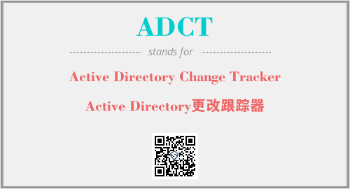 英文缩略词“ADCT”经常作为“Active Directory Change Tracker”的英文缩写来使用,中文表示:“Active Directory更改跟踪器”。本文将详细介绍英文缩写词ADCT所代表英文单词,其对应的中文拼音、详细解释以及在英语中的流行度。此外,还有关于缩略词ADCT的分类、应用领域及相关应用示例等。