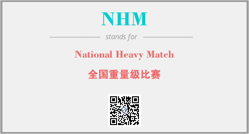 英文缩略词“NHM”经常作为“National Heavy Match”的英文缩写来使用,中文表示:“全国重量级比赛”。本文将详细介绍英文缩写词NHM所代表英文单词,其对应的中文拼音、详细解释以及在英语中的流行度。此外,还有关于缩略词NHM的分类、应用领域及相关应用示例等。
