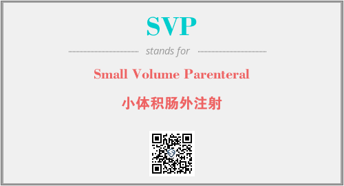 上述内容是“Small Volume Parenteral”作为“SVP”的缩写,解释为“小体积肠外注射”时的信息,以及英文缩略词SVP所代表的英文单词,其对应的中文拼音、详细解释以及在英文中的流行度和相关分类、应用领域及应用示例等。