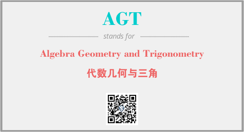 上述内容是“Algebra Geometry and Trigonometry”作为“AGT”的缩写,解释为“代数几何与三角”时的信息,以及英文缩略词AGT所代表的英文单词,其对应的中文拼音、详细解释以及在英文中的流行度和相关分类、应用领域及应用示例等。