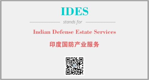 上述内容是“Indian Defense Estate Services”作为“IDES”的缩写,解释为“印度国防产业服务”时的信息,以及英文缩略词IDES所代表的英文单词,其对应的中文拼音、详细解释以及在英文中的流行度和相关分类、应用领域及应用示例等。