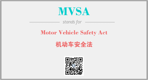 上述内容是“Motor Vehicle Safety Act”作为“MVSA”的缩写,解释为“机动车安全法”时的信息,以及英文缩略词MVSA所代表的英文单词,其对应的中文拼音、详细解释以及在英文中的流行度和相关分类、应用领域及应用示例等。