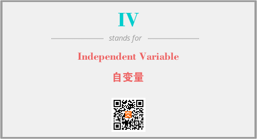 上述内容是“Independent Variable”作为“IV”的缩写,解释为“自变量”时的信息,以及英文缩略词IV所代表的英文单词,其对应的中文拼音、详细解释以及在英文中的流行度和相关分类、应用领域及应用示例等。