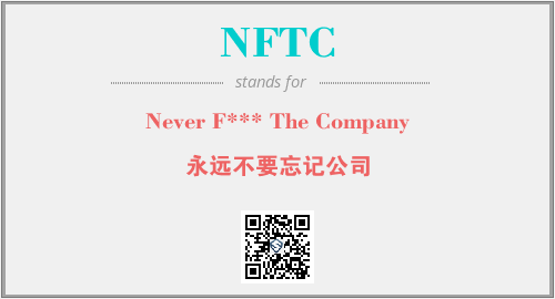 上述内容是“Never F*** The Company”作为“NFTC”的缩写,解释为“永远不要忘记公司”时的信息,以及英文缩略词NFTC所代表的英文单词,其对应的中文拼音、详细解释以及在英文中的流行度和相关分类、应用领域及应用示例等。