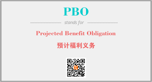 上述内容是“Projected Benefit Obligation”作为“PBO”的缩写,解释为“预计福利义务”时的信息,以及英文缩略词PBO所代表的英文单词,其对应的中文拼音、详细解释以及在英文中的流行度和相关分类、应用领域及应用示例等。