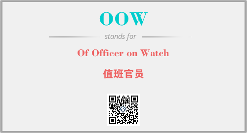 英文缩略词“OOW”经常作为“Of Officer on Watch”的英文缩写来使用,中文表示:“值班官员”。本文将详细介绍英文缩写词OOW所代表英文单词,其对应的中文拼音、详细解释以及在英语中的流行度。此外,还有关于缩略词OOW的分类、应用领域及相关应用示例等。