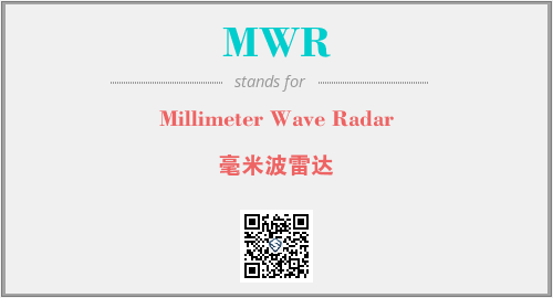 英文缩略词“MWR”经常作为“Millimeter Wave Radar”的英文缩写来使用,中文表示:“毫米波雷达”。本文将详细介绍英文缩写词MWR所代表英文单词,其对应的中文拼音、详细解释以及在英语中的流行度。此外,还有关于缩略词MWR的分类、应用领域及相关应用示例等。