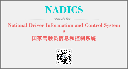 上述内容是“National Driver Information and Control Systems”作为“NADICS”的缩写,解释为“国家驾驶员信息和控制系统”时的信息,以及英文缩略词NADICS所代表的英文单词,其对应的中文拼音、详细解释以及在英文中的流行度和相关分类、应用领域及应用示例等。